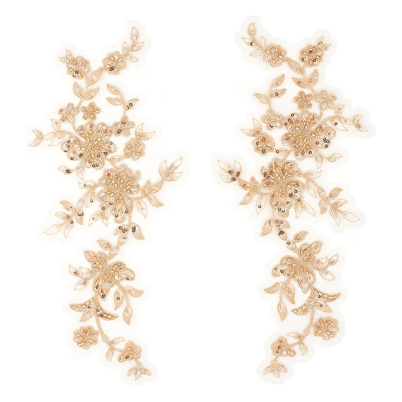 NICENEEDED Gold Flower Lace Embroidered Applique, Embroidery Patch Sewing Flower Lace Patches with Sequin, Embroidered Appliques Decor Wedding Dress Patches for Craft Projects