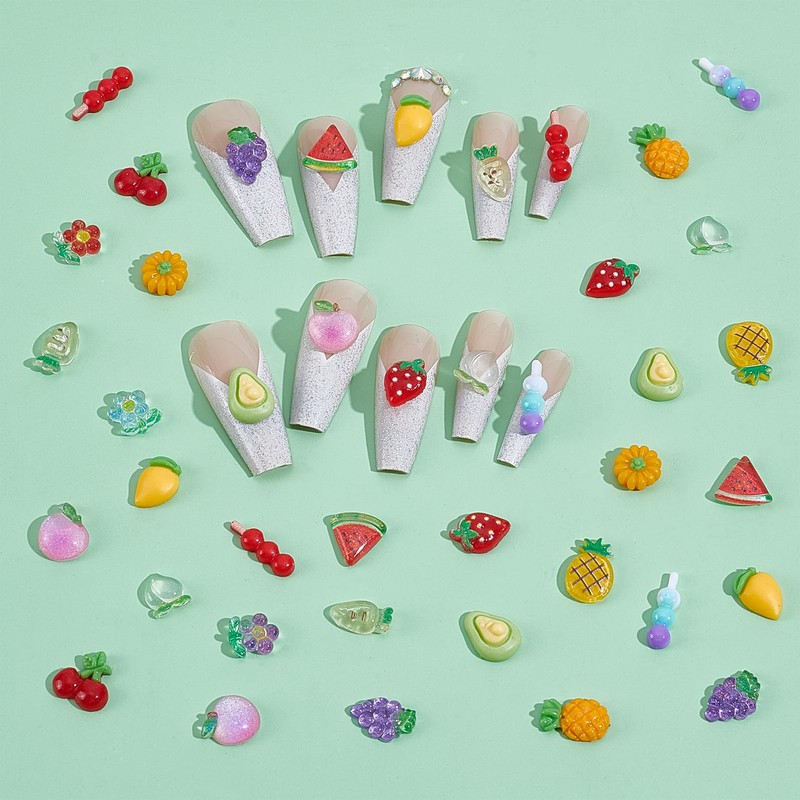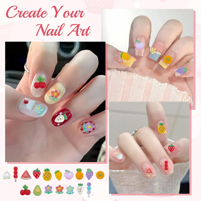 - Assorted Nail Charms: Including cookies, ice cream, fruits and other styles of 3D nail charms to meet your DIY design needs