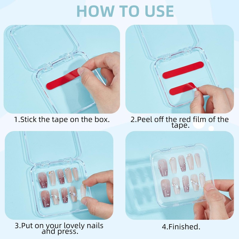 NICENEEDED Pack of 10 Storage Boxes for Press-on Nails, Plastic Packaging Boxes for Artificial Fingernails, Transparent Nail Organiser with Double-Sided Tape