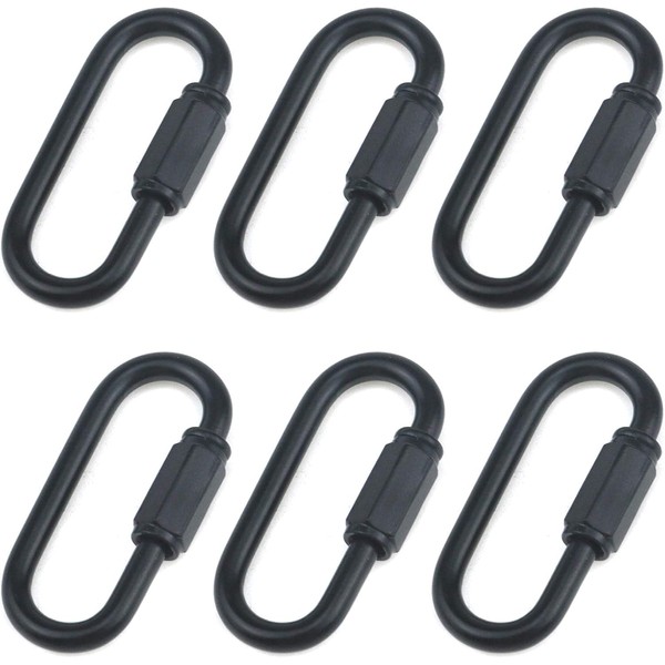 Nicerity Heavy Duty D Shape Chain Locking, M4 4MM Chain Quick Link Connector- Black (Pack of 6)