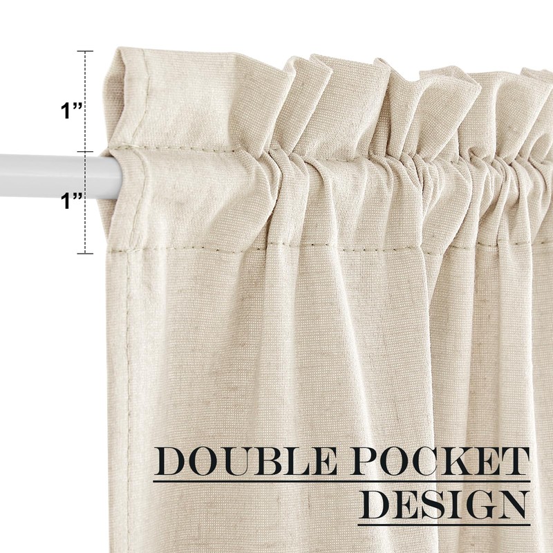 - 100% Blackout: The real blackout door curtains on the market. Linen blackout curtains crafted with white liner backing make the drapes completely keep out the 100% sunlight and UV ray. Protect your furniture from color fading due to sunlight exposition.