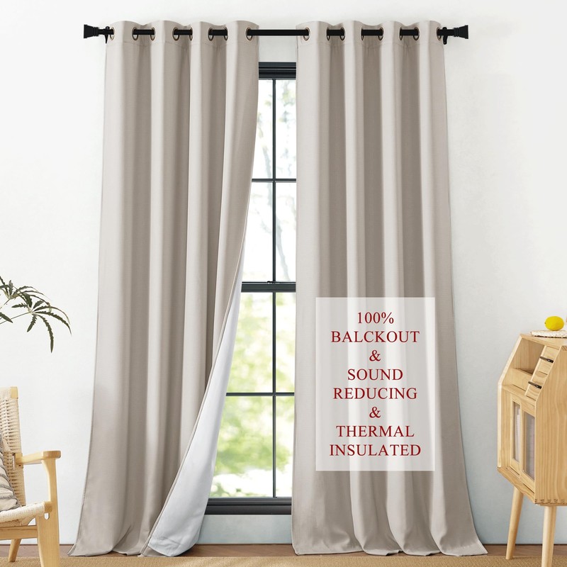 - 100% Blackout: Curtains are made with 2 layers faux linen fabric and 1 layer detachable felt fabric liner. Thick enough to completely keep out the 100% sunlight and UV ray. Offering you a real dark environment, a great choice for any room you would like to turn day into night.