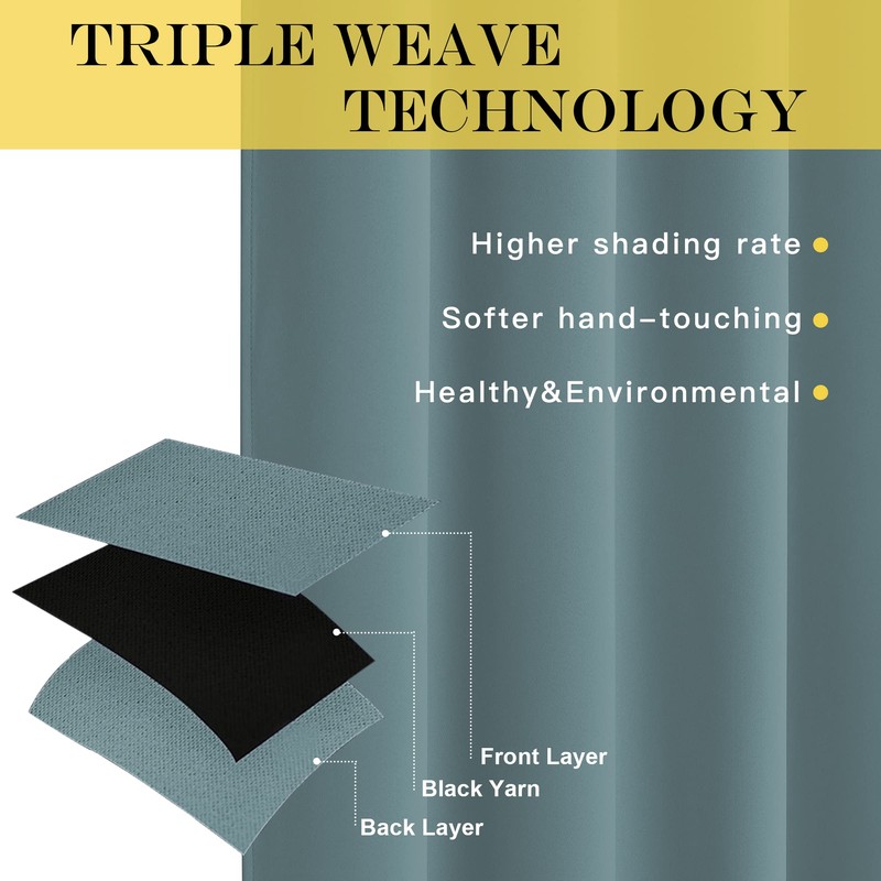 - AMAZING MATERIAL: This unique, soft, and heavy-duty blackout fabric is woven with three-layer construction. The middle layer of black yarns creates a curtain panel that is excellent for blocking out 85%-99% of light (Dark color works better on blocking light) while providing privacy.
