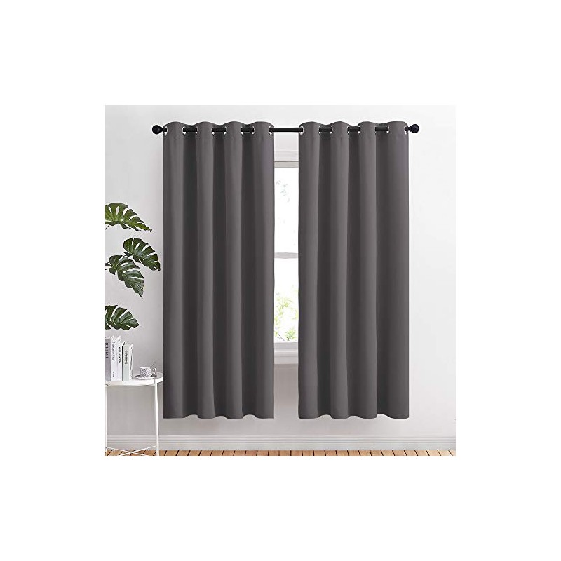 NICETOWN Blackout Curtains Panels for Bedroom - 3 Pass Microfiber Noise Reducing Thermal Insulated Solid Ring Top Blackout Window Drapes (2 Panels, 52 x 72 Inch, Gray)