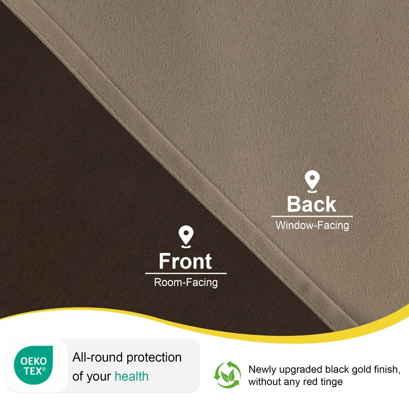 - Room Darkening: These curtains are manufactured in a STANDARD 100 certified by the OEKO TEX factory. The curtains made by black gold bottom covering technology. Non-coated, Non-chemical, which can block out 85%-95% bright sunlight and UV ray, bring you a full room darkening environment for good night sleep, afternoon nap and weekend lie-ins.