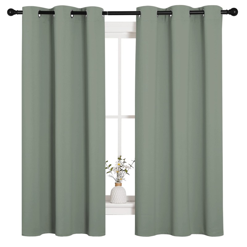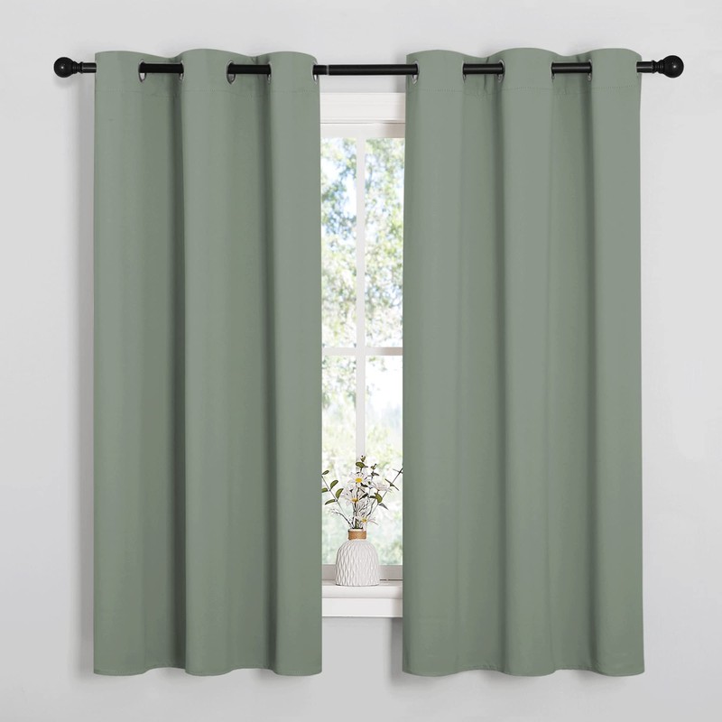 NICETOWN Greyish Green Nursery Essential Thermal Insulated Solid Grommet Top Blackout Short Curtains/Drapes for Son's Room (1 Pair, 42 x 63 inches)