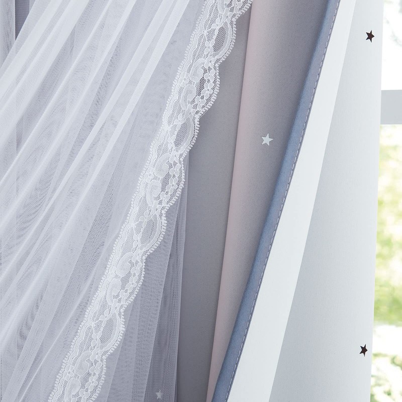 - Charming Look: White voile layer covered with blackout curtain features a dreamy elegant and romantic look to liven up any home decor. Perfect for your living room bedroom study kids bedroom. Blackout fabric provides room darkening and privacy while sheer panel brings an airy look.