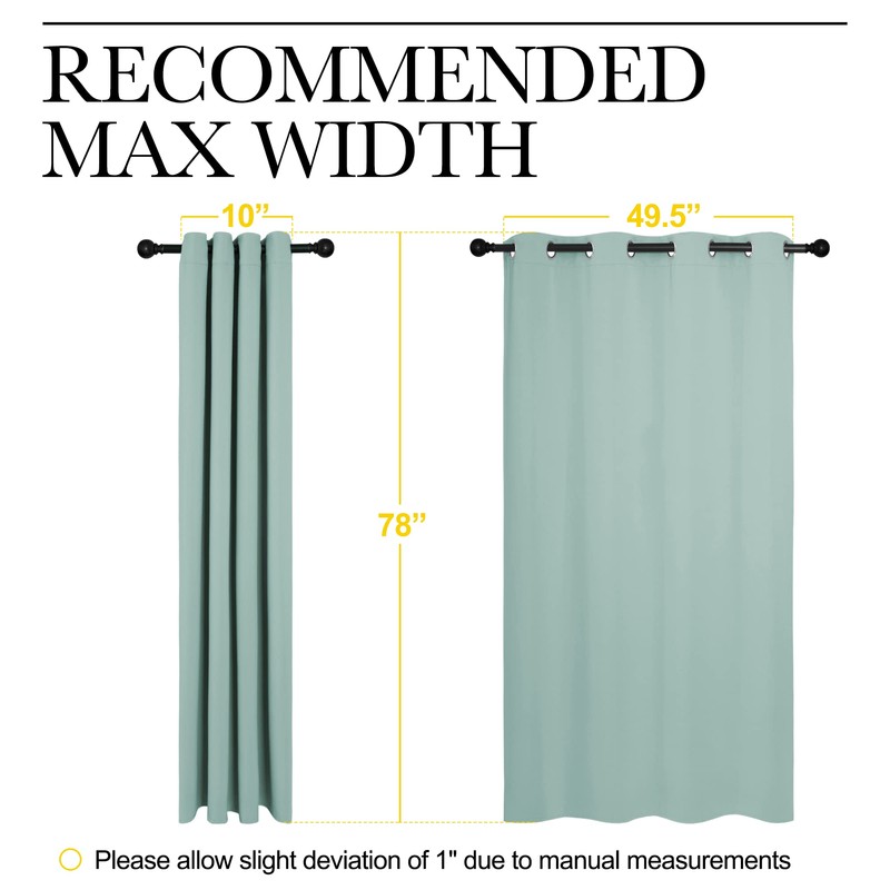 • Elegant Design: 2 panels per package. Each Blackout Curtain measures 55" wide x 78" long. The design of silver grommet (1.6-inch inner diameter) creates casual elegance for your house, which makes the curtains easy to install and slide.