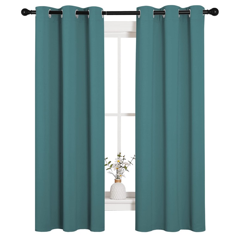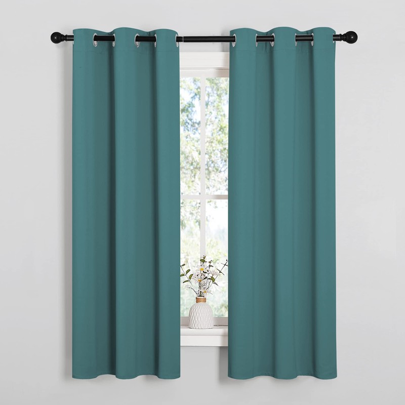 NICETOWN NICETOWN Kitchen Curtain Panels Blackout Draperies, Thermal Insulated Solid Grommet Blackout Curtains/Drapes (Sea Teal, One Pair, 34 by 63-Inch)
