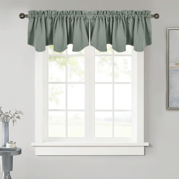 NICETOWN Valance Curtain Kitchen Farmhouse Window Decor Valance for Living Room Thermal Insualted Valanc Blackout Small Curtian, 52" W x 18" L, 1 Panel, Greyish Green