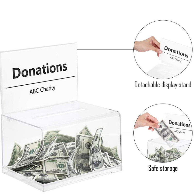 - Lockable donation box: the acrylic donation box comes with a lock and 2 identical keys, just in case to ensure the safety of the contents. It is perfect for safely storing money and other valuables