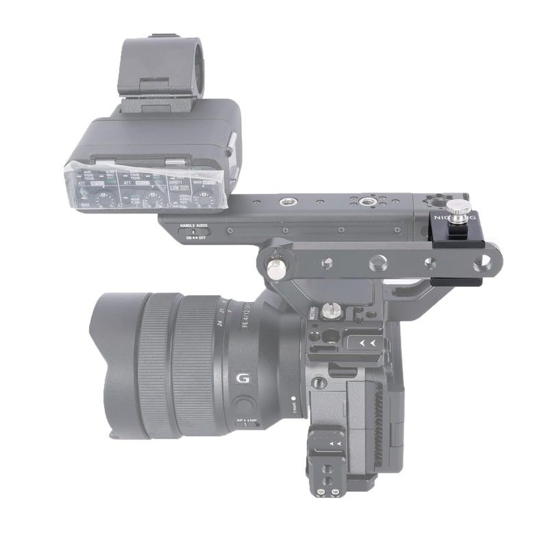 • Mounting points: 3/8''-16 ARRI positioning screw and nut rail clamp attaches to camera cage and top handle to ensure stability and prevent twisting
