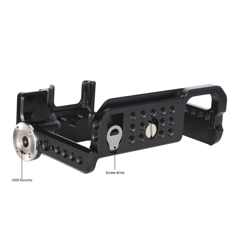- Features 3/8" holes, 1/4"-20 threaded holes and cold shoe mount on top for attaching handles, microphones, LED lights, monitors, etc.