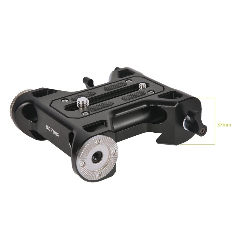 With standard 60mm center distance of dual 15mm rod clamp,it allows you to expand rod support accessories such as follow focus, matte box, lens support, etc. Besides, the base plate features a rosette adapter on the each side, so you can attach rosette mount handles (Optional 253/256) to make a shoulder rig.