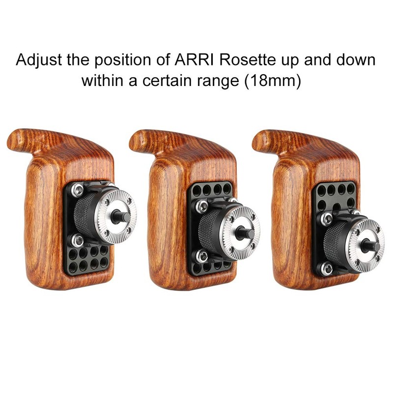 Can adjust the position of ARRI rosette up and down as per your photography need on the cheese plate of the wooden grip, within a certain range up to 18mm.