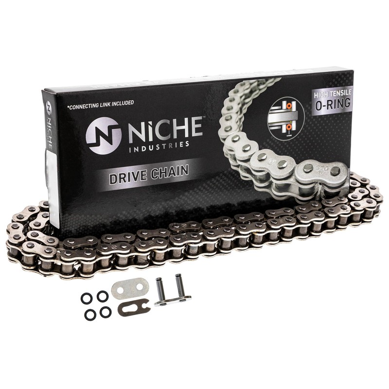 - Expertly Crafted with Quad-Riveted Pins, Hardened Steel Components and NBR O-Rings, Niche High-Performance O-Ring Chains are Built to Exceed the Performance of Your OEM chain