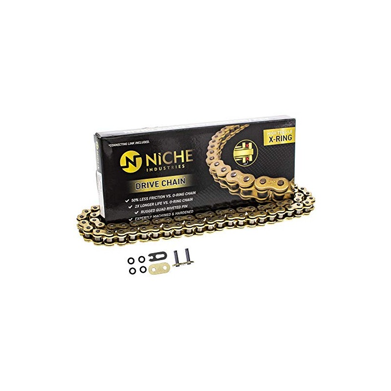 - Expertly Crafted with Quad-Riveted Pins, Hardened Steel Components and Premium NBR X-Rings, Niche X-Ring Drive Chains are Ultra-High-Performance Alternative to your OEM Chain