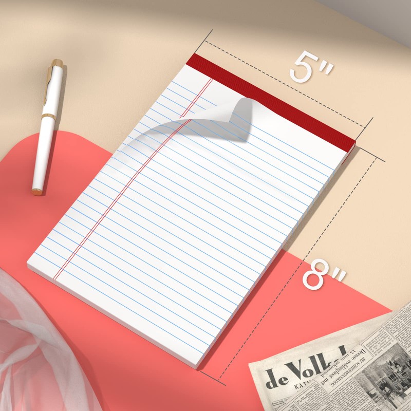 Nichela Note Pads 5x8 Inch 6 Pack of Small Legal Pads 25 Lines Notepads 30 Sheets Each Legal Writing Pads 80gsm Thick Paper Perfect for School, Work, and Home - Red Border Design