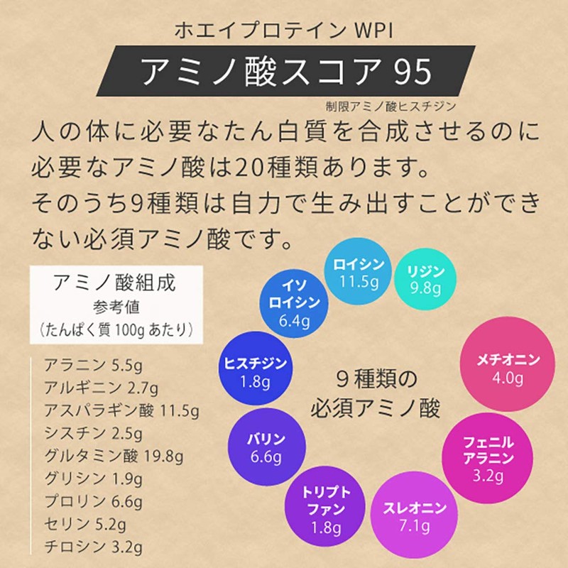 - 砂糖・保存料・増粘剤不使用。ホエイプロテインWPIは保存料、増粘剤など不使用、風味調整や泡立ちを抑える加工を行っていません。余分な成分を摂りたくない方におすすめのピュアプロテインです。