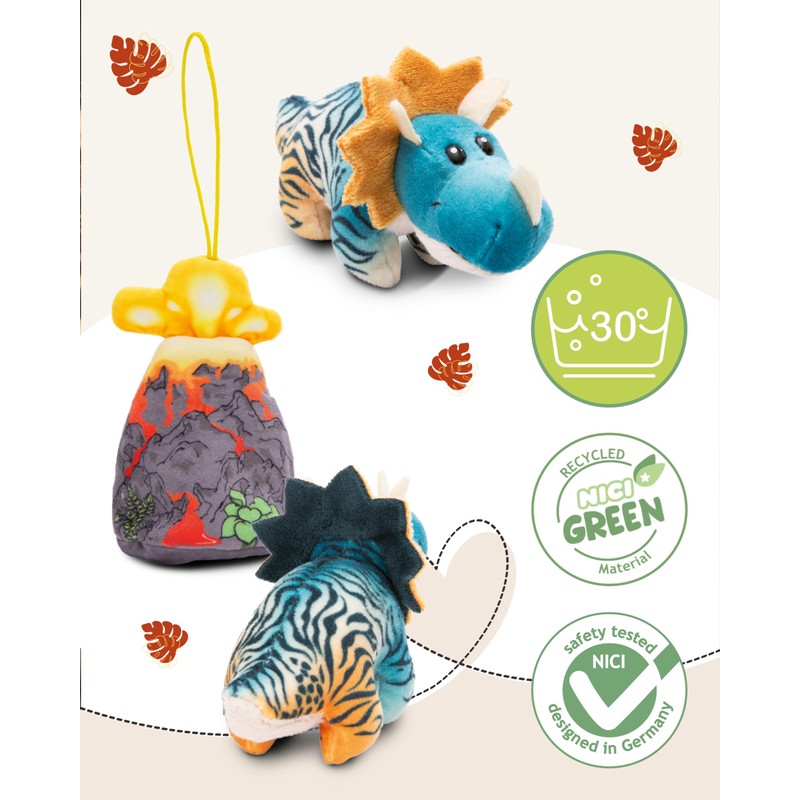 - NICI DINOS: The new Triceratops presents itself just like its prehistoric friends: with colourful details and exciting material mix. The collection is ideally complemented by 2 cute dinosaurs in the plush volcano