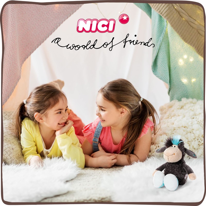 - Cuddly soft: the black plush sheep with the cheeky blue strand in the hair and the colour-perfectly matching shoes is made of high-quality NICI plush and a very special member of the Jolly family