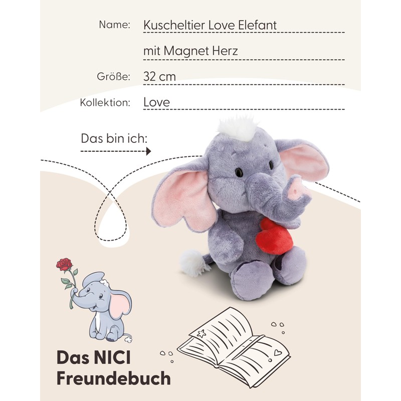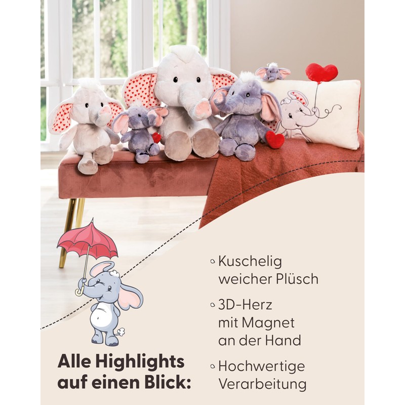 - Love is in the air: the dark grey cuddly toy elephant is the perfect gift to show love! It impresses with its cuddly soft feel and magical facial expression. A 3D plush heart makes it an elephantastic gift