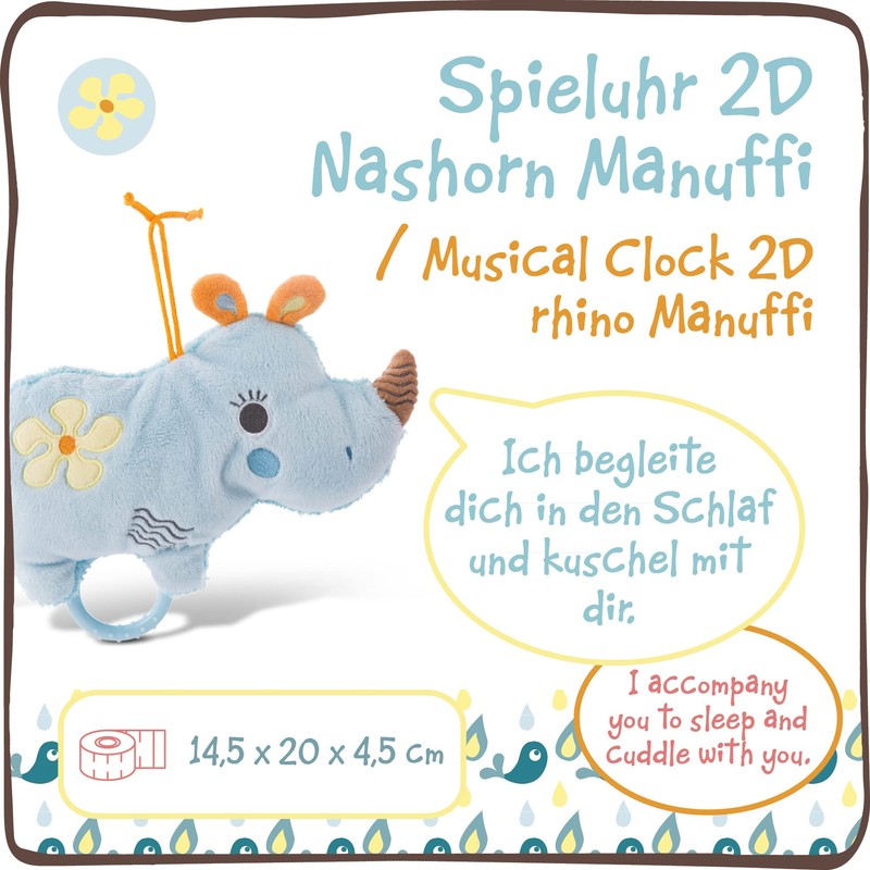 NICI Wind-up 2D Rhino Manuffi 20 cm from 0+ Months for Boys & Girls - Music Box Baby - Sleep Aid for Babies & Infants - Ideal for Bed, Pram, Cradle - Mozart's Lullaby, Blue