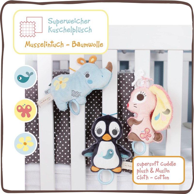 - Baby equipment: The cuddly toy music box is made of super soft NICI plush for feeling, pressing and cuddling. Thanks to the hanger, the plush toy music box can be easily attached to the baby bed, cradle, pram or baby seat