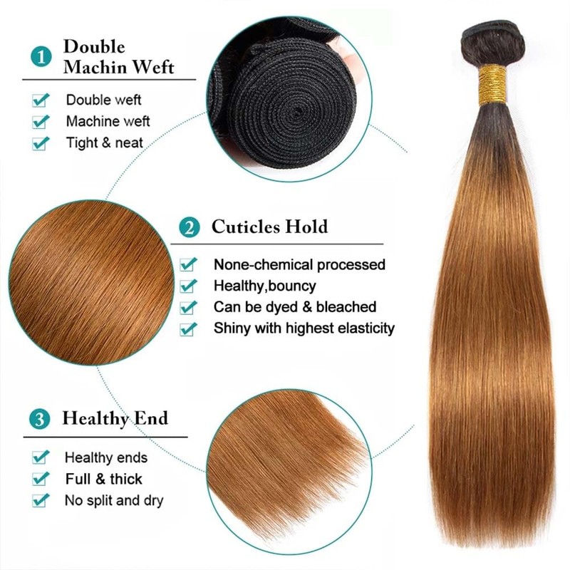3.Hair Color:1B/30 Bundles Human Hair Ombre Straight Bundles Black To Brown Straight Huamn Hair Bundles.
