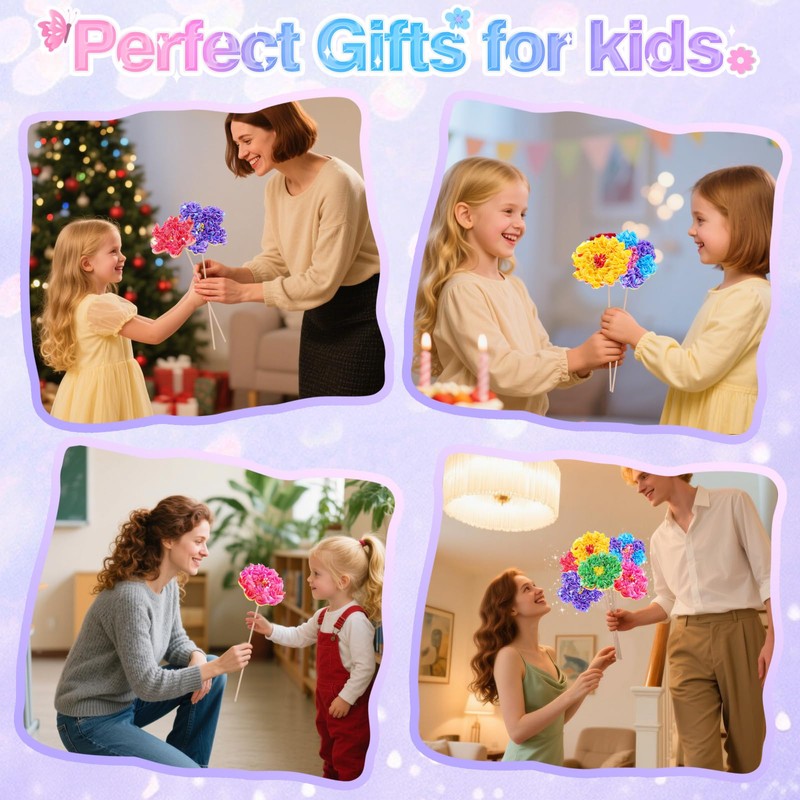 - 800pcs Floral Craft Kit:Create stunning DIY bouquets with this deluxe floral craft kit! Includes 800+ crinkle-cut fabric squares, 8 foam flowers, 2 bendable butterflies, 10 grooved wooden stems, textured stamens, poking tools, and a padded work surface. Perfect for ages 4-12 to design vibrant arrangements while developing fine motor skills.