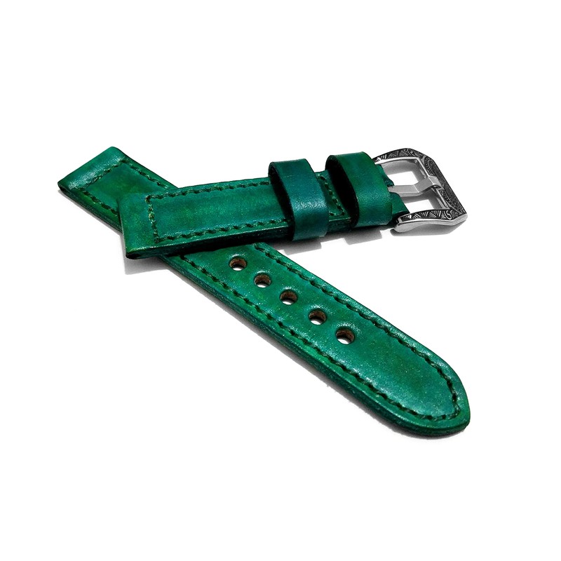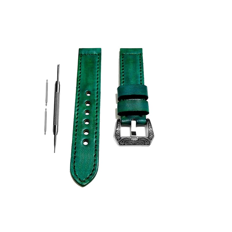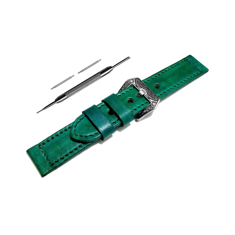 NICKSTON Green Brushed Genuine Leather Strap Compatible with Garmin D2 Air, D2 Air X10, Vivoactive 5 and Vivoactive 3 Smartwatches Band Pins Tool B20 (1. Engraved Silver Color Buckle)