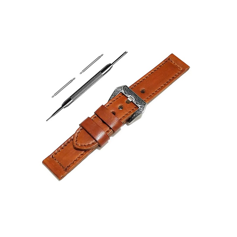 - You will receive 1 (One) High Quality Genuine Leather Watch Band Strap (2x Pins 1x Buckle and 1x Tool - included). Easy / Quick to Install and Take Off Smartwatch.
