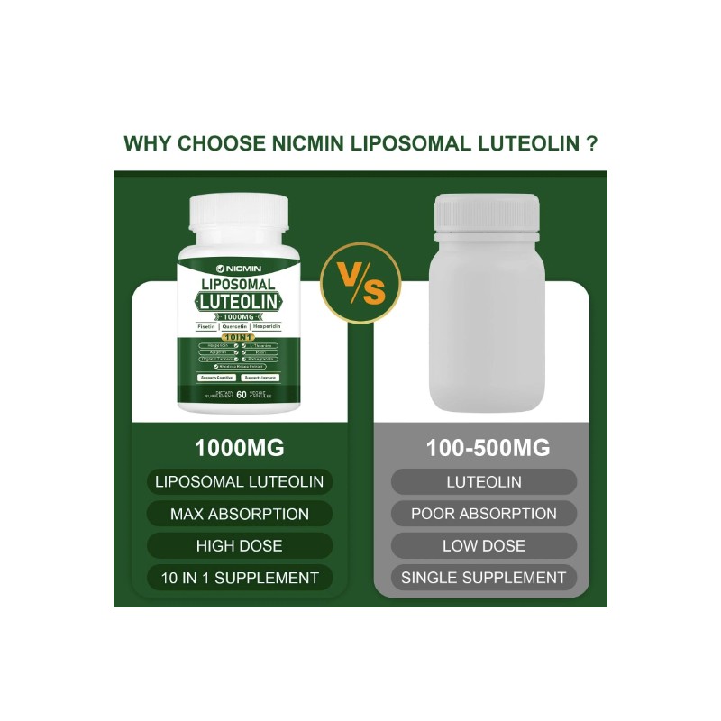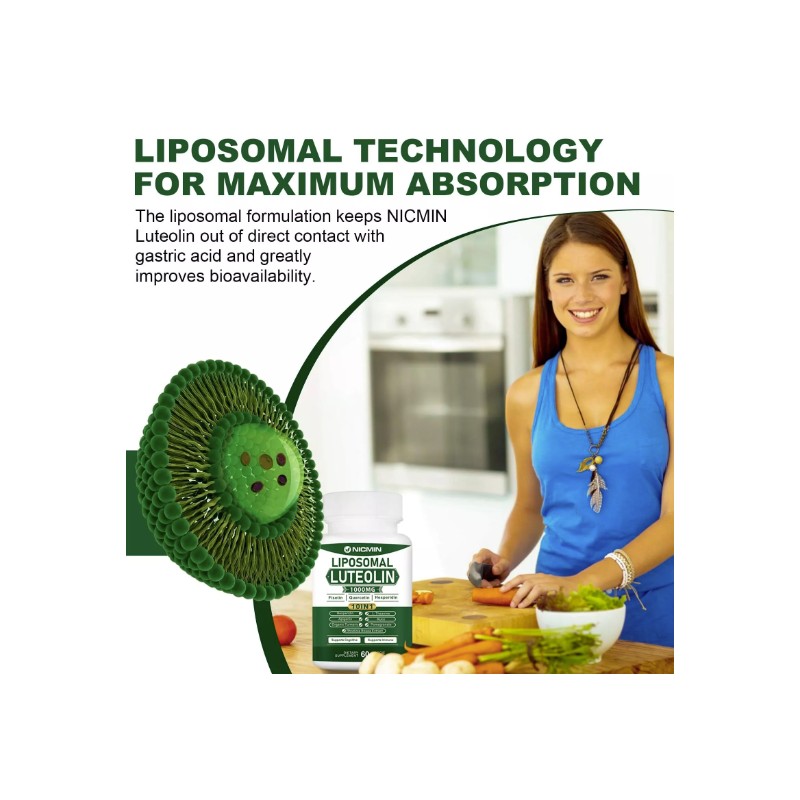NICMIN 1000MG Liposomal Luteolin Maximum Absorption Potent Luteolin Supplemen...