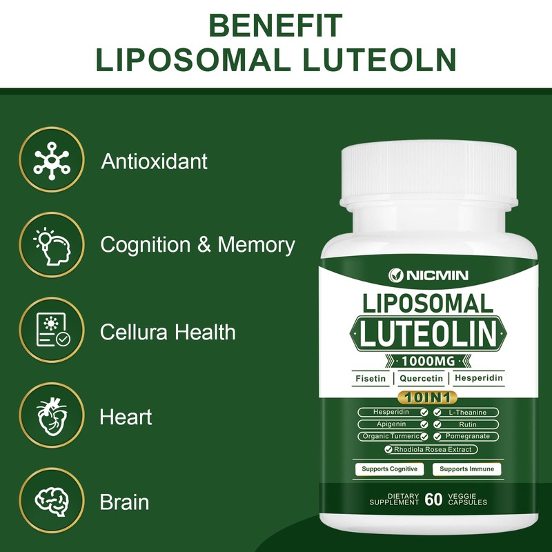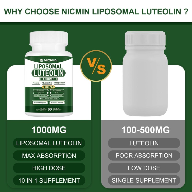 NICMIN 1000MG Liposomal Luteolin, Maximum Absorption, Potent Luteolin Supplement 180 Capsules