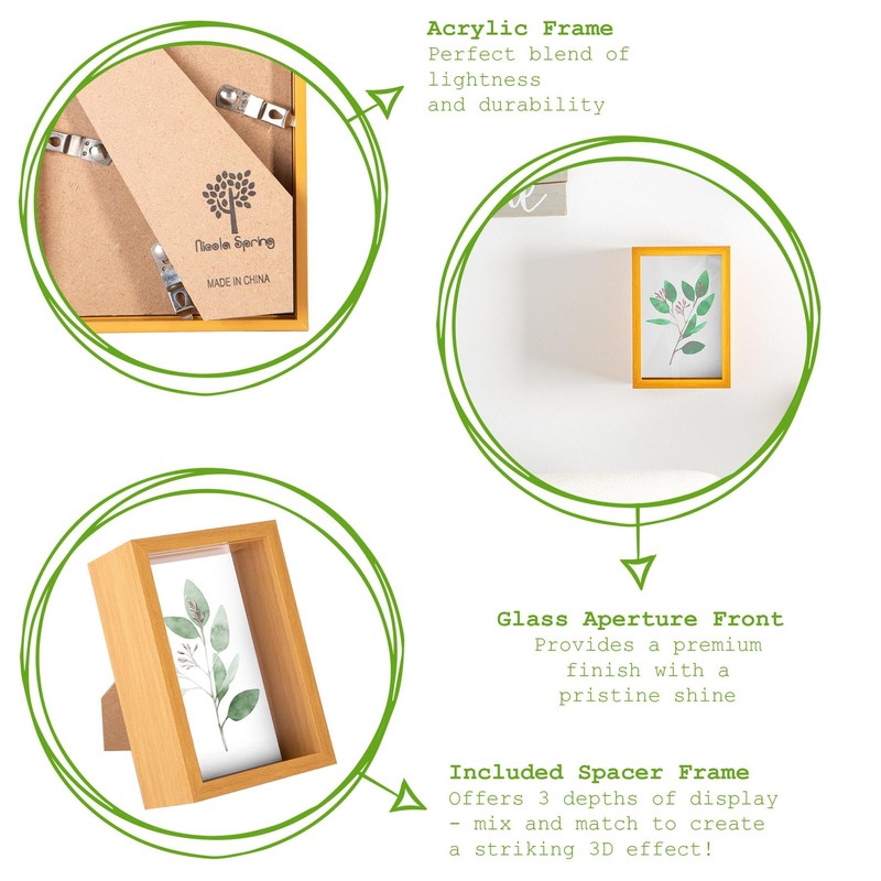 What truly sets this box photo frame apart is its cover—a sheet of genuine glass that enhances the photography or artwork behind it, giving it a luxurious shine. Additionally, the frame comes with a removable 'spacer frame,' offering three display positions for a striking multi-dimensional effect. Elevate your home décor with this elegant and versatile frame, perfect for showcasing your treasured moments.