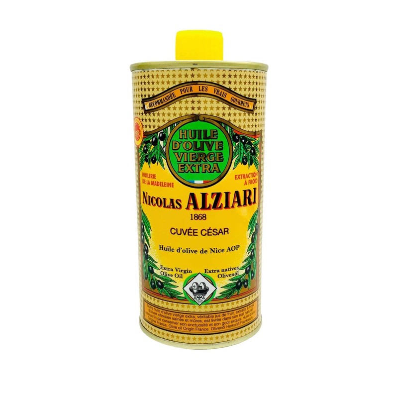 - The Nicolas Alziari Cuvée Cesar AOP Nice is a “cru” olive oil produced in small quantities. It’s an exclusive product, not sold year-round. It’s made with cailletier olives, which are widespread in Nice. This extra virgin olive oil underwent cold extraction, almost golden in color, with a nearly translucent quality. On the nose, it gives notes of dry herbs. And on the palate, a nutty, almond taste, with notes of artichoke.