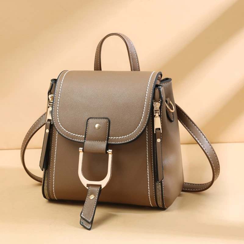 NICOLE & DORIS Stylish Backpacks for Women Small Backpacks Cute Ladies Daypack Leather PU Handbags Waterproof Anti-Theft Rucksack Girls Fashion Backpack and Shoulder Bag Khaki