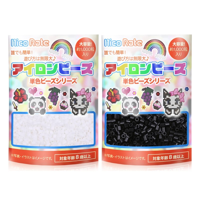 NicoRate Ironing Beads, Solid, Refill, "Most Frequently Used!" Black and White Set; Zipper Included, Small Dividing, Approximately 1000 Tablets Each, Total Approx. 2000 Tablets