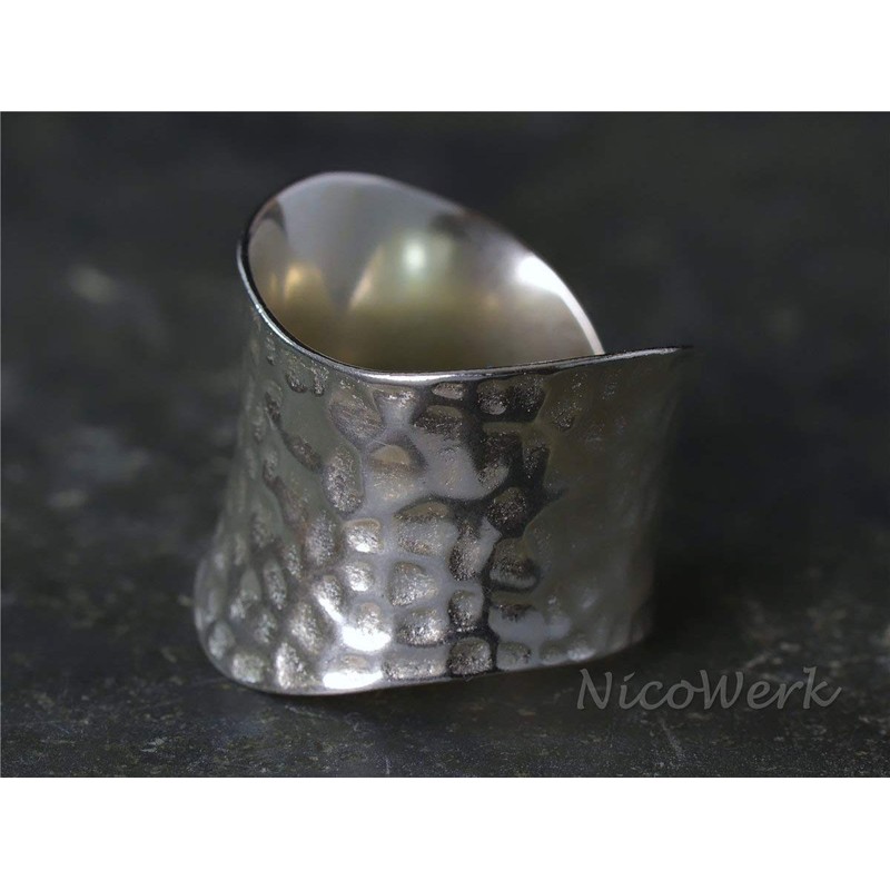 NicoWerk Silver Ring - Wide Ring in High Gloss Style - Hammered Design - Adjustable for Any Finger - High Quality - Gift Boxed 193, Sterling Silver, No Gemstone