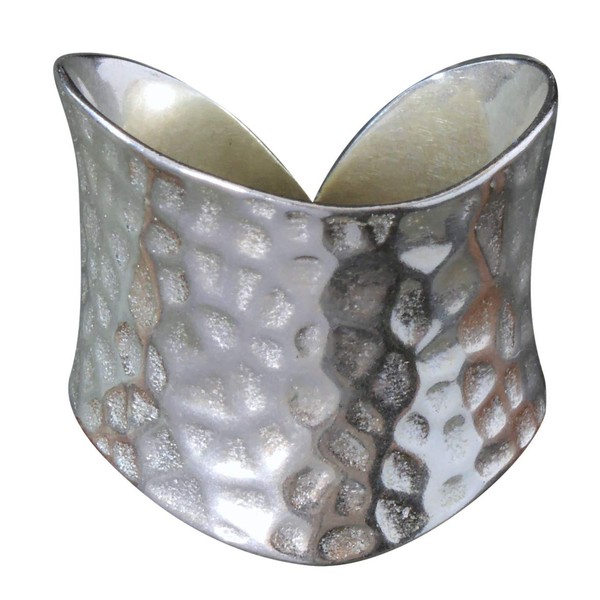 NicoWerk Silver Ring - Wide Ring in High Gloss Style - Hammered Design - Adjustable for Any Finger - High Quality - Gift Boxed 193, Sterling Silver, No Gemstone