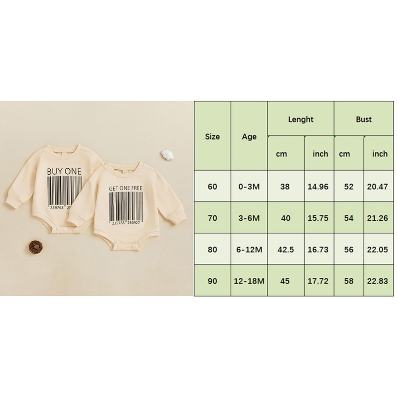 - OCCASIONS: Unisex twins funny letter print romper sweatshirt perfect for daily wear, baby shower gift, birthday party, outdoor wear, summer wear, baby announcement onesie and take photo