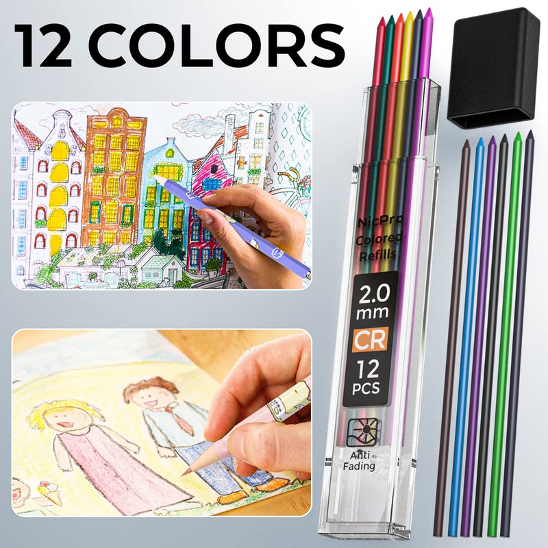 - 【Refillable and Reusable】:adopting high quality ABS plastic material, these mechanical pencils are lightweight and durable for kids use,with eraser and lead refillable design,this set is ideal for long time school use,there is totally 12 tubes of lead refills for replacement