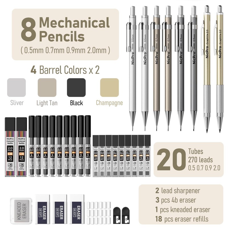 - 100% RISK FREE PURCHASE: If you are not satisfied with Nicpro mechanical pencil set , we’re very happy to either provide a no-questions-asked Refund or Replacement. 12 month warranty,Order today risk free!