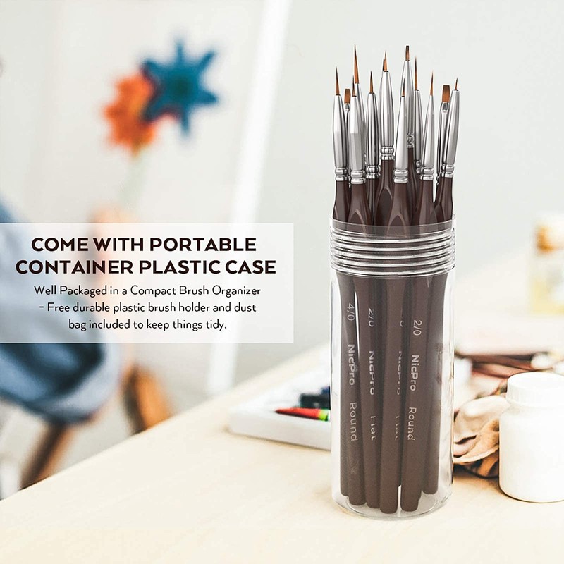 Nicpro Fine Detail Paint Brush Set, 15 PCS Small Professional Miniature Thin Brushes for Watercolour Oil Acrylic, Nail, Art Craft Models Rock Painting & Paint by Number - with Holder Bag
