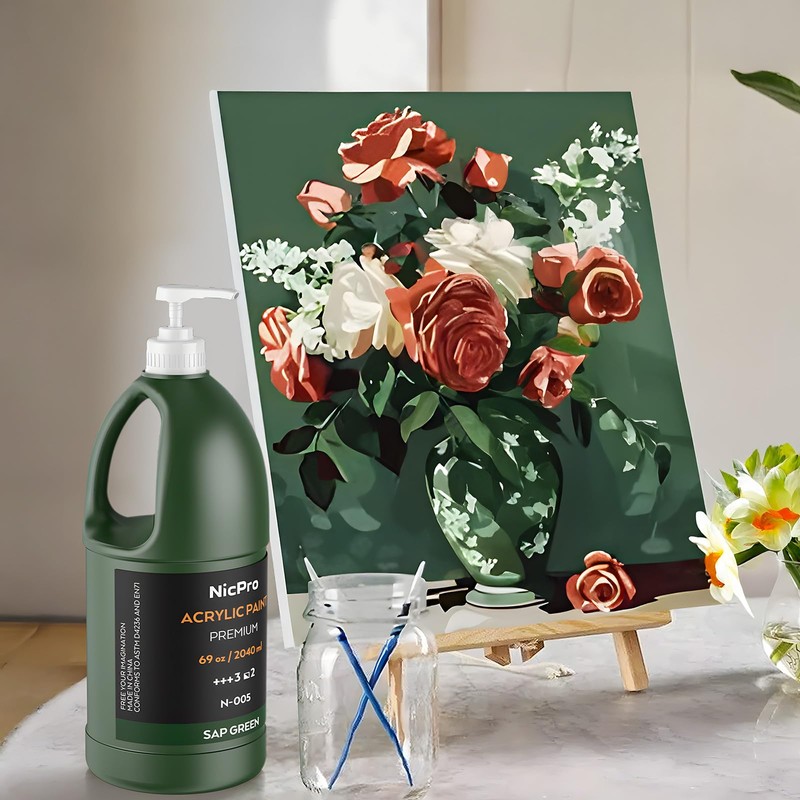 Nicpro Sap Green Large Acrylic Paint Set (69 oz, 2040 ml) Rich Art Painting S...