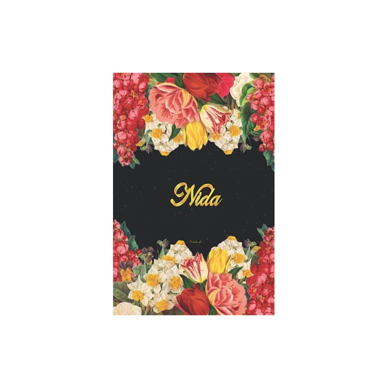 Nida Notebook: Lined Notebook / Journal with Personalized Name, & Monogram initial N on the Back Cover, Floral Cover, Gift for Girls & Women