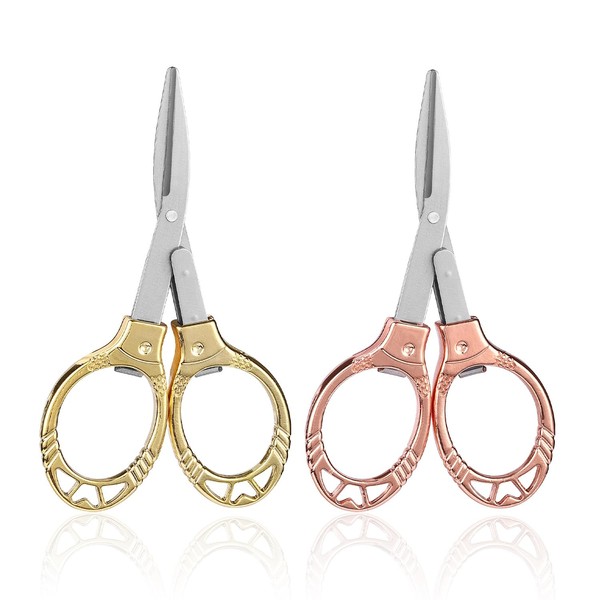 - 【Product Content】You Will Receive 2 Pieces Of Mini Folding Scissors. The Size Is 10*5.8Cm, And The Colors Are Gold And Rose Gold, Which Are Suitable For Handmade And Daily Tailoring.