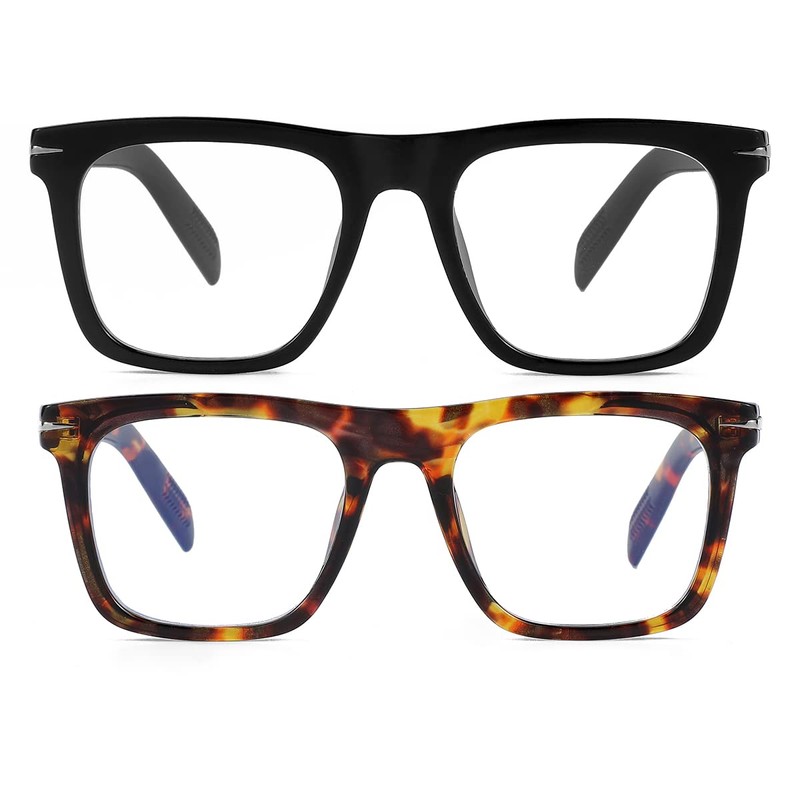 NIDOVIX anteojos cuadradas de moda con bloqueo de luz azul para hombres y mujeres, marco de moda sin receta para computadora, Paquete de dos unidades: (negro y carea), lenswidth