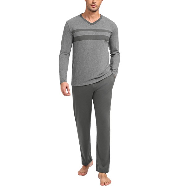 Nieery Men's Pyjamas Sets Cotton Men's Loungewear Set, Breathable and Comfortable Sleepwear Pjs Set with Drawstring and Pockets Dark Grey XL