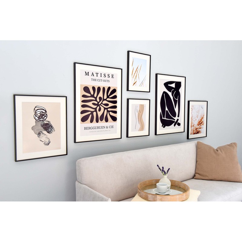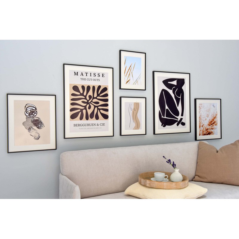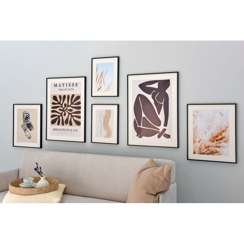 The 45° bevel cut in the permanently white or black cutting edge achieves an optical depth effect that clearly highlights the motif and gives a spatial character. The formats and image sections are matched to the most common standard dimensions of picture frames. Please note that the inner cut-out is approx. 1 cm smaller than stated, so you can place the picture on each side on the mount and attach it with the included adhesive strips. So it does not slip forward.